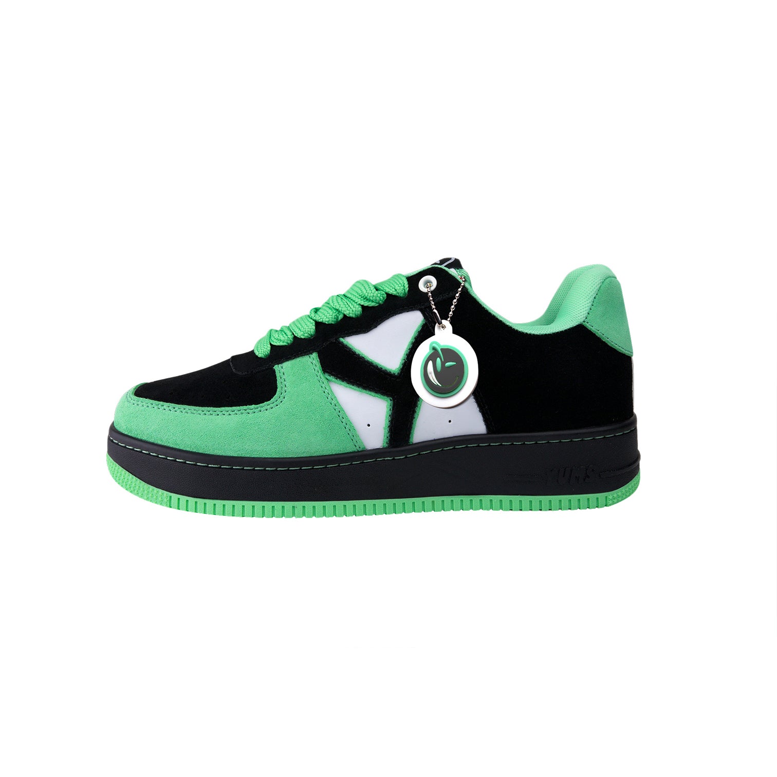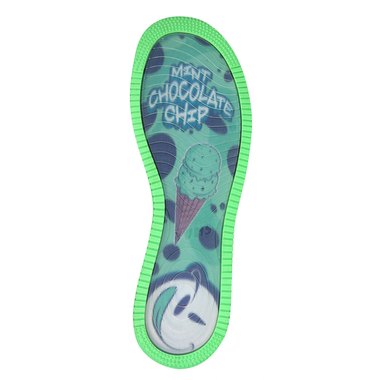 Freshen up your style with the Mint Chocolate Chip Sneakers. Crafted with a cool mix of mint green and black suede, crisp white leather accents, and contrast stitching, these kicks bring the perfect balance of bold and fresh. The signature translucent sole showcases Mint Chocolate Chip-inspired artwork, adding a flavorful finishing touch. Whether you're hitting the streets or stepping up your sneaker game, these kicks deliver standout style with a streetwear edge.