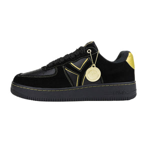 Turn heads in the boldest black and gold sneakers out there. The Wild Style 03 brings the heat with a luxe combo of suede and pebbled leather, contrasted with metallic gold accents and stitching. The translucent sole reveals our signature YUMS sole artwork. This isn’t just a sneaker, it’s a statement. Laced for the spotlight, built for the street.